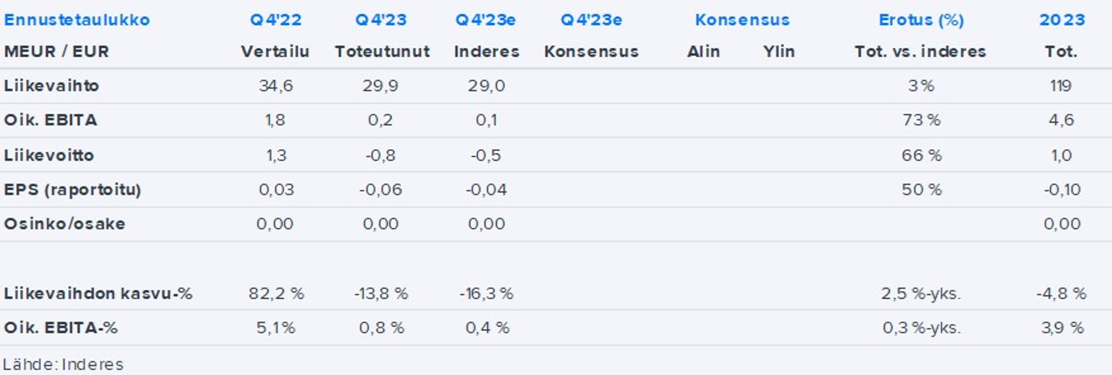 Inderesin vastuuvapauslauseke löytyy täältä. Kunkin Inderesin aktiivisessa seurannassa olevan osakkeen tarkemmat tiedot löytyvät kunkin osakkeen omilta yhtiösivuilta Inderes-sivustolla. © Inderes Oyj. Kaikki oikeudet pidätetään.