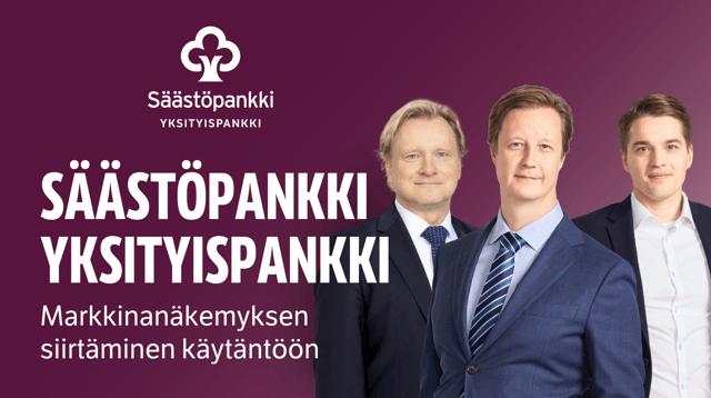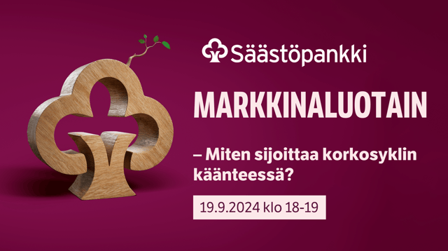 Säästöpankkiryhmän puolivuosittain julkaistavassa Markkinaluotain-webinaarissa kokenut asiantuntijatiimi tarkastelee sijoitusmarkkinoiden näkymiä seuraavan kuuden kuukauden ajanjaksolla. Keskustelussa pureudutaan niin makro-, osake- kuin korkomarkkinoidenkin ajankohtaisiin teemoihin.