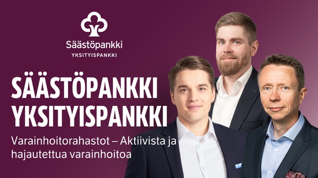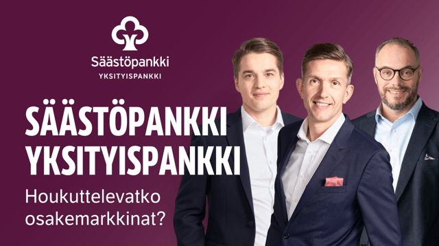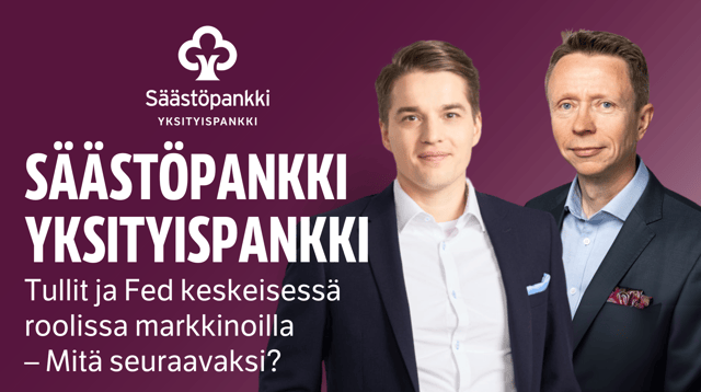 Varainhoitorahastoista sekä tietysti markkinanäkemyksistä webinaarissa ovat keskustelemassa Säästöpankki Yksityispankin markkinastrategi Kalle Ainala sekä yksityispankkiiri Eerik Nieminen.