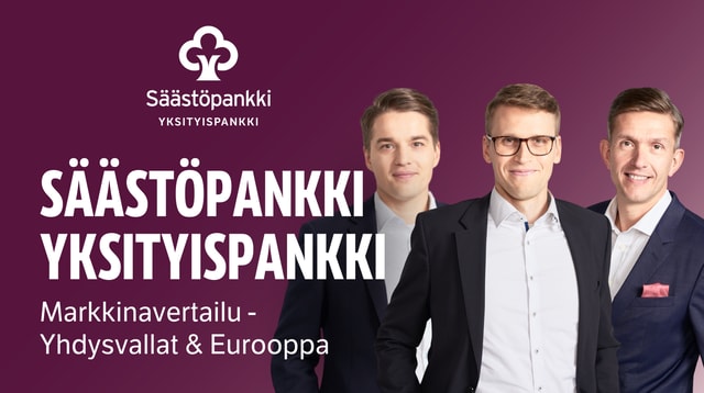 Yhdysvaltain talous on ollut vahvaa jo pidemmän aikaa - erityisesti teknologiayhtiöiden ansioista. Euroopassa puolestaan on ollut haastavampaa. Toukokuun Yksityispankki -webinaarissa tarkastellaan Yhdysvaltain ja Euroopan sijoitusmarkkinoita, niiden eroja sekä tulevia näkymiä. Markkinakatsausta päästään seuraamaan Sp-Rahastoyhtiön salkunhoitajien Johan Hamströmin ja Anders Pellin johdolla. Tervetuloa mukaan!