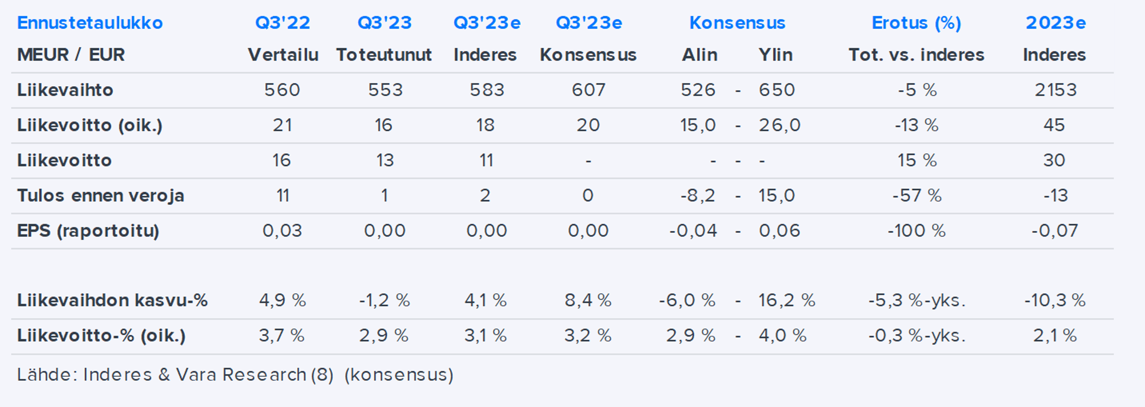 Analyytikon kommentit ja suositukset