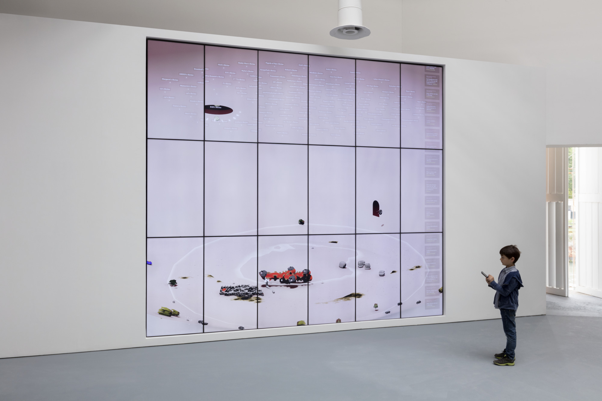 The Doors, a newly commissioned installation by Zach Blas, by contrast shines the spotlight back onto the present and on the culture and ethos of Silicon Valley as ground zero for the development of AI. Inspired by the ubiquity of enclosed gardens on tech campuses, he has created an artificial garden framed by a six-channel video projected on glass panes that convey a sense of algorithmic psychedelia aiming to open new “doors of perception.” While luring visitors into AI’s promises, it also asks what might become possible when such glass doors begin to crack.